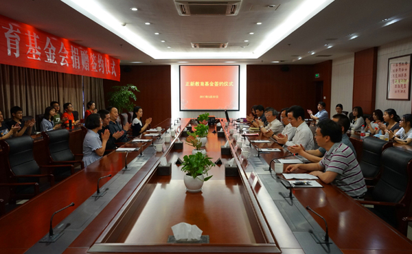 本网讯 5月22日下午,由上海正新食品有限公司捐资100万元设立的 “正新教育基金”签约仪式在我校下沙校区举行。上海正新食品有限公司董事长陈传武,校长钟晓敏,副校长黄建新,上海正新食品有限公司董秘陈晨,党校办、社会合作处、计财处、中国金融研究院、校教育基金会办公室等相关部门负责人及师生代表出席捐赠仪式。