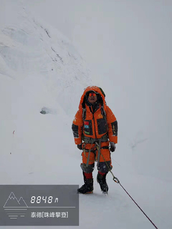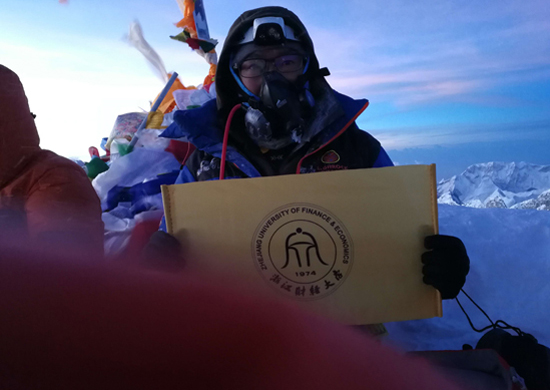 王建斌校友现任浙江德清泰德机械有限公司董事长、总经理。自2013年9月登上生命中的第一座雪山——四姑娘山二峰(海拔5238m)开始,便爱上了这一极限运动,四年间先后登上了四姑娘山三峰(海拔5454m,2014年1月)、雀儿山(海拔6168m,2014年9月)、慕士塔格峰(海拔7546m,2015年7月)和卓奥友峰(海拔8201m,2016年10月)等。今年3月,他和20余名登山爱好者一起前往珠穆朗玛峰,向世界最高峰发起挑战,于5月23日零时冲顶,6时16分成功登顶。