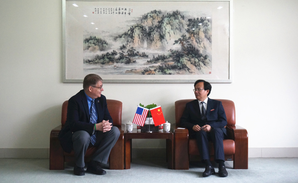 因奇简要介绍了托莱多大学商学院的发展近况,他对目前双方合作项目的进展情况表示满意,并称赞了我校的学生培养质量。
