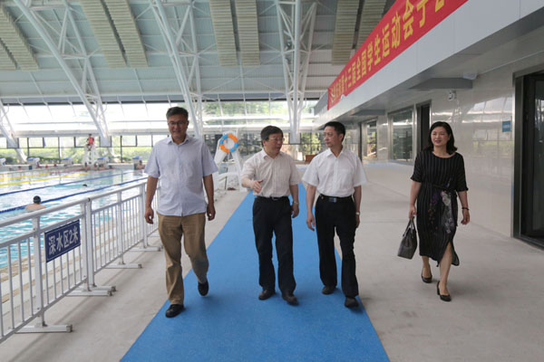 廖文科在校长钟晓敏陪同下视察了第十三届全国学生运动会竞赛指挥中心、游泳比赛场馆。廖文科详细了解了竞赛指挥中心的功能及赛事综合信息系统、视频监控和专用网络的建设情况,仔细询问了解游泳比赛场馆的改造及游泳比赛运行流程,饶有兴致地观摩了学校游泳课教学过程。