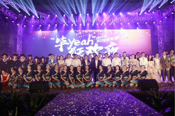 本网讯(通讯员 陈炜 许乐)6月13日晚,“毕yeah”狂欢夜暨2017届毕业生晚会在我校下沙校区西体育馆隆重举行。李金昌、钟晓敏、卢新波、黄建新、陈金方、励如孟、徐晓东等校领导与学校各职能部门、单位的领导,校友、教师及毕业生代表等共同度过了一个难忘的毕业之夜。