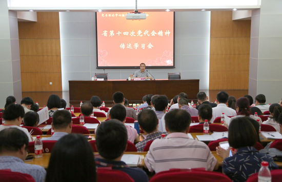 本网讯 6月21日下午,学校召开校党委理论中心组学习(扩大)会议,专题传达学习贯彻省第十四次党代会精神。校党委书记、理论中心组组长李金昌主持会议,校党委理论中心组成员,全体中层干部参加学习会。