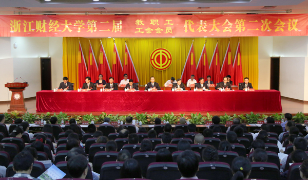 大会号召,全校教职工、工会会员在学校党政的坚强领导下,不断把握新形势,运用新思维,谋求新发展,进一步振奋精神、增强信心、干在实处、走在前列、勇立潮头,大力推进学校各项事业的改革发展,在建设高水平财经大学的新征途上,谱写更加灿烂辉煌的篇章!