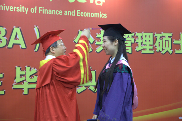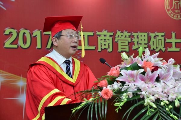 工商管理学院(MBA学院)院长董进才为毕业生颁发证书