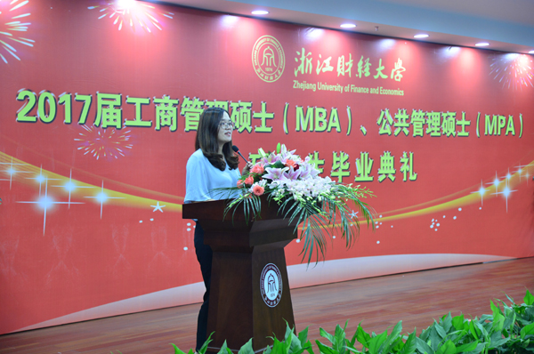 导师代表、公共管理学院(MPA教育中心)廖丹子老师,亲友及校友代表、2017届毕业生张丽莉同学的爱人、我校2013届MBA校友、北京大爱城控股地产集团宁波公司营销总监徐晓东先生,毕业生代表、公共管理学院MPA学生、杭州市国家税务局第二稽查局副主任科员章箐同学,在校生代表、工商管理学院MBA联合会主席、慈溪弘正会计师事务所合伙人余丹丹分别在典礼上发言。