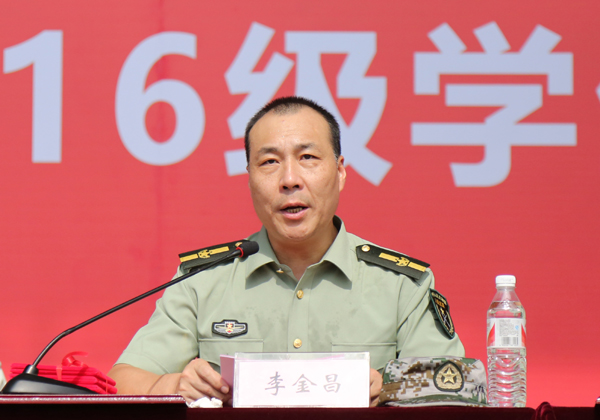李金昌在讲话中首先代表学校向承担本次军训任务的全体教官表示崇高的敬意和衷心的感谢,并向参加军训的全体同学致以亲切的问候,向在军训中取得优异成绩的先进集体和个人表示热烈的祝贺。他指出,教官高度负责的态度,严谨细致的作风,充分展现了当代军人的良好风采;同学们积极训练、英勇拼搏,充分展现了财大学子的意志品质和精神风貌。他希望,同学们以军训为契机,继续发扬和保持良好的作风和习惯,不断锤炼品质,争做“六有”大学生,为今后学习生活奠定更加坚实的基础。