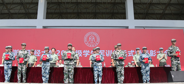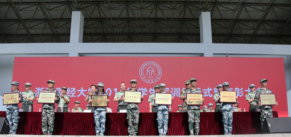 陈金方宣读了队列先进集体、军歌嘹亮比赛先进集体、军训优秀副排长、军训先进个人、国防演讲比赛先进个人等获奖名单,并进行了颁奖。