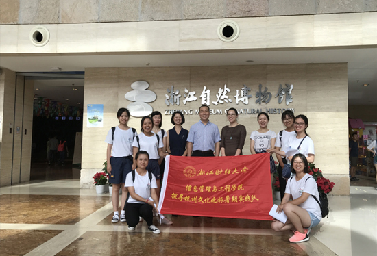 7月7日下午,校党委书记李金昌一行来到了浙江自然博物馆,看望了信工学院“探寻杭州文化之旅”实践团,与同学们亲切交谈,仔细询问并详细了解了团队的社会实践情况,鼓励同学们要充分利用这次实践的机会,了解杭州文化,并通过文化这一切入点,深入地了解国情社情,为今后走入社会打下良好的基础。