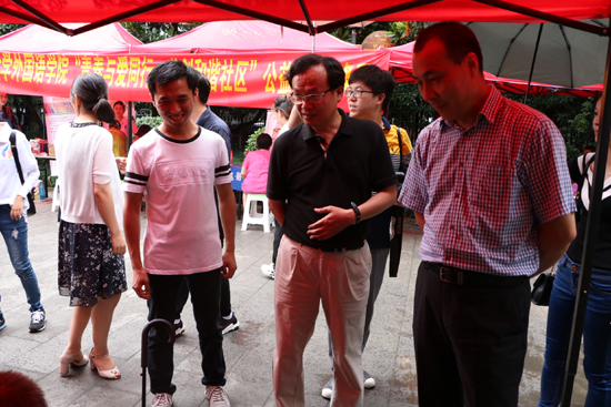 7月10日下午,校党委书记李金昌、副校长黄建新来到杭州市上城区大学路社区走访看望了外国语学院“青春与爱同行,共创和谐社区”暑期实践服务团。活动现场,同学们积极参与涌泉便民服务中心的“助老快车”项目等活动。李金昌对实践服务团成员们不畏酷暑,坚持服务社区、回馈社会的精神表示充分肯定,并强调了社区服务实践的重要意义,希望同学们要继续发扬不怕苦、不怕累的精神,通过社会实践拓展视野、增长才干。