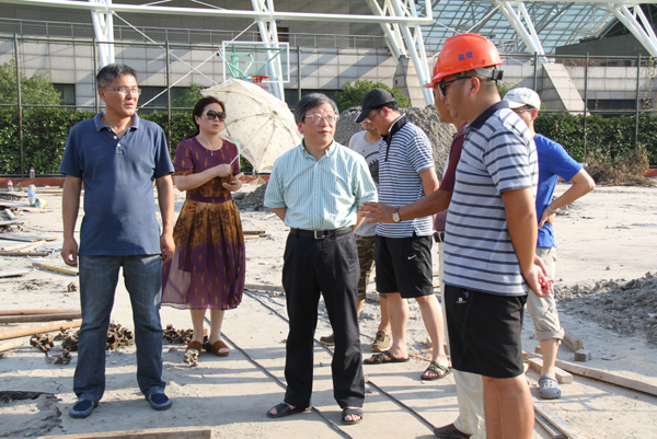 为了在8月底完成拆装式泳池的安装,确保第十三届全国学生运动会的顺利进行,风雨棚的建设迫在眉睫。为了不耽误工期,虽然室外气温近40℃,施工人员仍加班加点工作着。在拆装式泳池风雨棚施工现场,钟晓敏向施工单位负责人详细了解了工程进展情况,要求施工单位严把质量关,确保工程如期完成,并嘱咐施工方要重视安全生产,科学、合理地安排好作息时间,同时做好一线工作人员的防暑降温工作,保证身体健康。