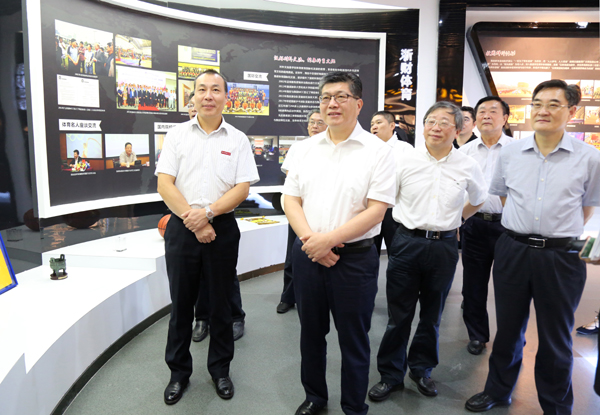 成岳冲副省长一行还来到了体育文化展馆,参观了我校体育文化成果展。他频频点头,充分肯定了我校体育教育成效,高度赞扬了学校体育育人成果。