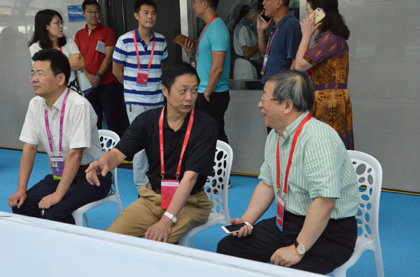 本网讯 9月5日上午,教育部体卫艺司巡视员廖文科一行莅临我校,视察第十三届全国学生运动会首日游泳比赛情况。校长钟晓敏、副校长励如孟陪同考察。