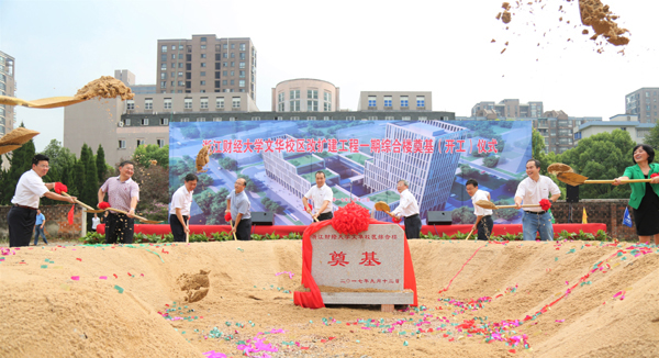 校长钟晓敏在奠基仪式上发表了热情洋溢的讲话。他指出,文华校区一期综合楼工程项目是我省重点工程,也是学校“十三五”时期的一项重要工程举措。该项目的实施将进一步优化校内资源配置、拓展办学空间、强化文华校区的功能定位,为学校教学科研及创新创业人才的培养提供多功能、现代化的设施条件,将有效实现教育教学资源的共享和多元利用,为学校建设高水平创新创业型财经大学提供坚实的硬件基础和条件保障。他希望各参建单位要确保工程质量,加快工程进度,突出安全施工,实现紧密协作,共同打造出“安全、可靠、环保”的精品工程、人心工程,早日建成学校在城西的新地标建筑。