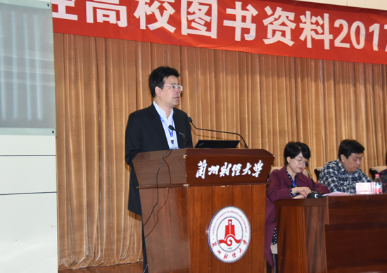 本网讯 日前,由中国高教学会财经分会主办的以“‘双一流’建设背景下的财经高校图书馆新型服务能力体系建设”为主题的中国高教学会财经分会图书资料协作组2017年年度工作会议在兰州召开。来自全国45所财经院校图书馆的领导和专家以及各大数据商专家等100余人参加会议。开幕式由中国高教学会高等财经教育分会图书资料协作组秘书长、我校图书馆馆长吴利群主持。