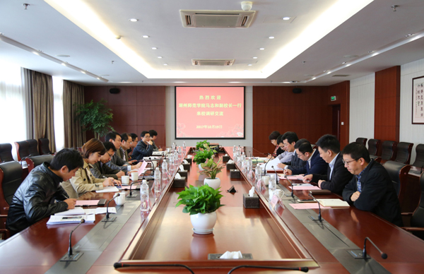 马志和副校长对湖州师范学院的基本情况与发展目标作了介绍。随后,双方职能部门围绕师资队伍建设、绩效考核办法、高层次人才分配制度、绩效工资划拨规则等问题进行了深入讨论和热烈交流。