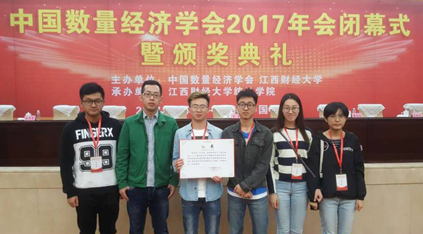 本网讯 10月20日至22日,中国数量经济学会2017年会在江西财经大学召开。我校金融学院研究生林博、周寒娴、潜乾、陈一恺、朱正皓等同学应邀参加年会。林博同学在会上报告的论文《基于最优Copula模型的上市公司债券流动性风险和市场风险的集成度量》(指导教师:陈荣达教授),荣获中国数量经济学会第十届优秀科研成果奖论文二等奖。