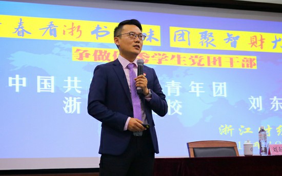 培训期间,校党委委员、宣传部部长徐晓东为团支部书记们带来 了一场主题为“深入学习传达党的十九大精神,勇做新时代团员青年思想引领者”的报告。通过对党的十九大会议精神的解读,让团支部书记们深刻理解了习近平新时代中国特色社会主义思想的丰富内涵。他希望大家今后能够学会用习近平总书记青年工作思想武装头脑、指导实践、推动工作,为建设国内一流、国际知名、特色鲜明的创新创业型财经大学贡献自己的一份力量。他还希望大家牢固树立“四个意识”,坚定“四个自信”,增强责任感和使命感,践行奉献精神,不忘初心,牢记使命,带领团员青年听党话、跟党走,为实现“两个一百年”奋斗目标、实现中华民族伟大复兴的中国梦不懈奋斗!