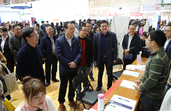 本网讯 10月31日,2018届毕业生秋季大型招聘会在我校下沙校区举行。校领导李金昌、黄建新等深入招聘现场,与用人单位代表交流沟通,详细了解用人需求,并与应聘毕业生亲切交谈,询问应聘情况。