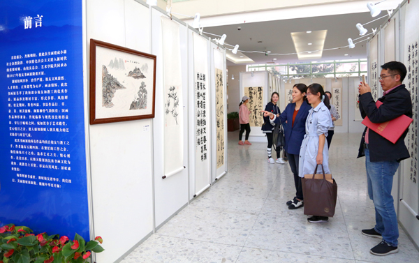 李金昌分别与王国泉和张宁校友为校友书画俱乐部和校友摄影俱乐部揭牌。随后,校友书画摄影作品联展正式开幕。