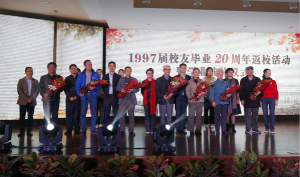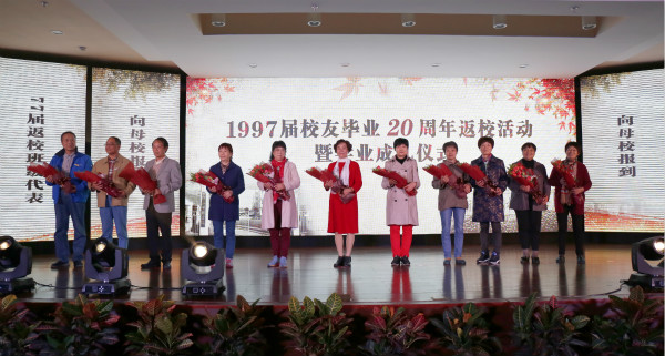 在一曲《老师,我总是想起你》的歌声中,1997届校友代表上台为退休老教师代表献花,表达了他们对恩师的感激之情,一句句问候,一声声祝福,使在场的许多校友回想起学生时代的点点滴滴,不禁热泪盈眶。