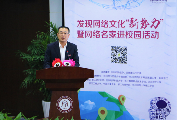 本网讯 11月7日下午,发现网络文化“新势力”暨网络名家进校园活动启动仪式在我校下沙校区举行。共青团浙江省委常委、宣传部部长王辉球,校党委委员、宣传部部长徐晓东,杭州市网信办副主任周晔,共青团杭州市委副书记沈威,杭州经济技术开发区相关领导,新浪浙江相关负责人和各协办高校团委负责人及学生代表、媒体记者等近300人参加。