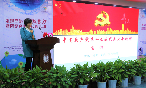 启动仪式后,新浪浙江总编辑余丹凤,十九大代表、网络正能量大V徐岚,国内知名主持人于虎依次作了宣讲,引导青年学生自觉传播优秀网络文化,积极传递网络正能量。