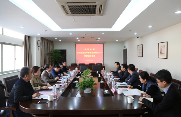 李铁范对我校的热情接待表示感谢,并介绍了淮北师范大学的基本情况。随后,双方围绕学科建设、人才引进、科研管理等方面工作进行了深入的探讨交流。