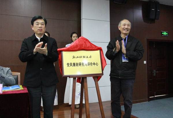 陈金方和省政治学会会长余逊达共同为买球体育官方网站党风廉政研究与评价中心揭牌。