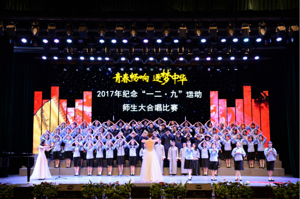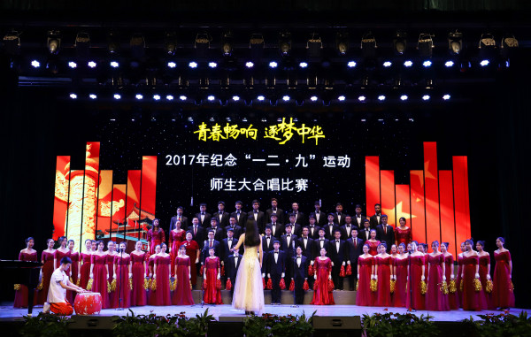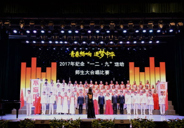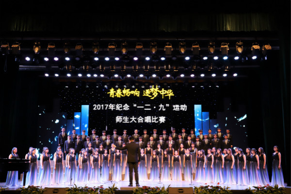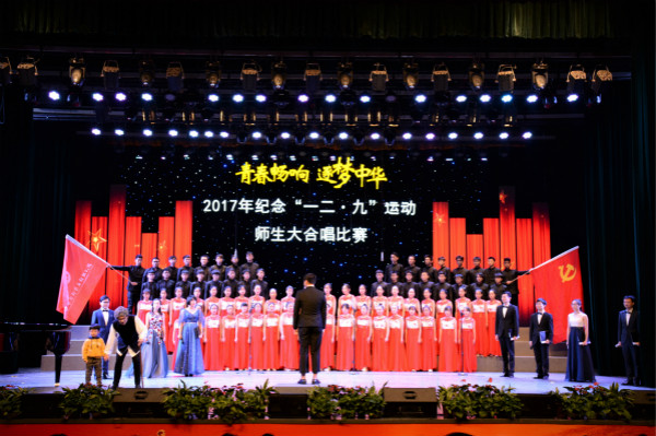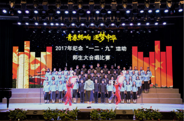 本网讯 12月12日下午,纪念“一二•九”运动师生大合唱比赛在我校下沙校区隆重举行,全校师生接受了一次深刻的爱国主义教育洗礼。校领导李金昌、黄建新、陈金方,党校办、组织部、宣传部、学生处、研究生院、校团委等职能部门、各学院相关负责人和师生代表等近千人共同观看了本次比赛。