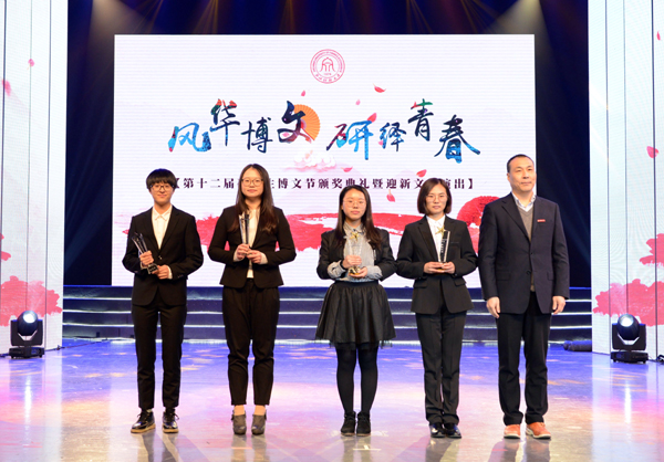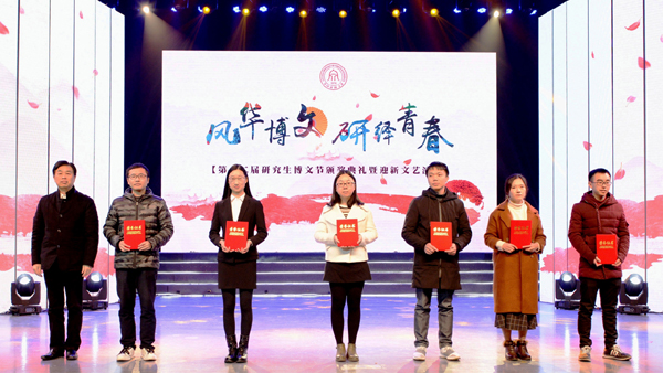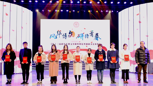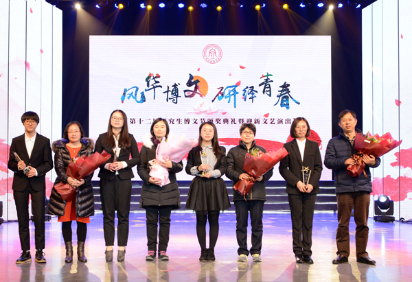 颁奖典礼上,校领导和研究生院负责人为第十二届研究生博文节系列活动获奖代表颁奖。