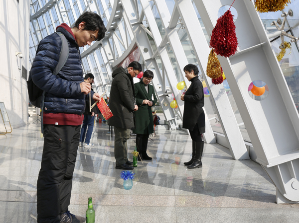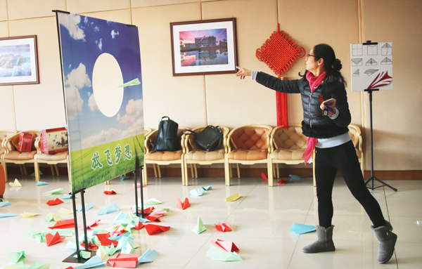 中午12时,各项活动正式开始。教工之家张灯结彩,热闹非凡,洋溢着喜庆祥和的节日氛围。以“明德笃学”“经邦济世”“崇实创新”“勇立潮头”为主题的“共绘财大蓝图”活动现场,老师们根据自己喜欢的色彩,在相应的纸面上用色笔涂色,一起共绘财大蓝图;“放飞梦想”活动现场,老师们集体放飞亲手制作的承载着自己梦想的纸飞机;“筷落瓶安”“幸福跳跳跳”集趣味与技巧一体,为活动现场增添了别样的趣味。通过游艺活动,团结凝聚财大力量,营造集体干事创新创业的良好氛围,同时让教职工们在欢笑的氛围中表达出对学校的衷心祝愿,祝福我们的财大越来越好。