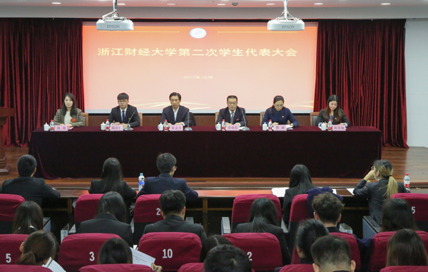 本网讯(通讯员 冯洁)12月23日,我校第二次学生代表大会在下沙校区隆重召开。校纪委书记陈金方,校党委委员、宣传部部长徐晓东,浙江省学生联合会执行主席赵彦钧,校团委相关负责人,各学院团委书记及兄弟高校学生会主席等280余人参加大会。