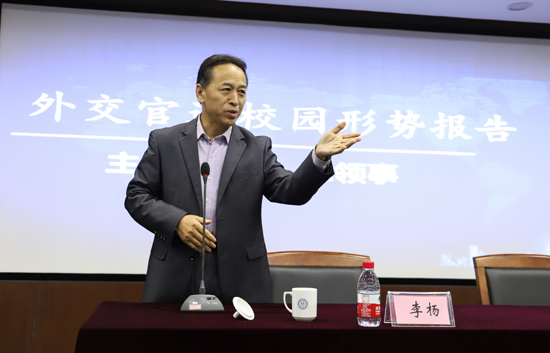 李杨对我校坚持举办“外交官进校园”活动20年尤为赞赏。他表示,这也为身处第一线的外交官提供了一个生动宣讲国际形势的良好平台。李杨认为,实际上外交官是在协助、配合学校做好青年学生的思想政治工作,这就是外交部倡导外交官进高校的初衷。