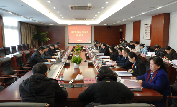 会上,鲍学军听取了我校贯彻落实思想政治工作会议精神情况的汇报,充分肯定了我校思想政治工作所取得的成效,对我校学习宣传贯彻党的十九大精神和全国全省高校思想政治工作会议精神系列举措给予了充分肯定。他说,一年来,买球体育官方网站的思想政治工作措施到位、任务落实、做法创新,成效明显,形成了良好的三全育人机制和工作态势。鲍学军对进一步做好思想政治工作提出了五点要求:一是要铸魂固本,统一认识,把思想政治工作贯穿落实到办学的全过程。要坚持正确的政治方向,从全面从严治党和推进党的建设新的伟大工程的高度切实抓好思想政治教育工作,要在铸魂和价值引领上下功夫,塑造一代新人。二是要协同育人,党政齐抓共管,各部门形成工作合力。要发挥协同效应,建立和谐高效、健康发展的运行机制,把任务落实到具体工作中,解决好突出问题。三是要同频共振,进一步抓好思政理论课主渠道作用。要使思政理论课真正成为传播主流价值观的平台,深入分析大学生思想观念、价值取向、行为方式,把握学生心理发展规律和接受机制,因事而化、因时而进、因势而新,扎实推进思政课教学改革。四是要同向同行,进一步抓好队伍建设。要使专业教师队伍、思政教师队伍、管理服务队伍都主动将思想政治教育融入实际工作中。进一步做好教师思想政治工作,着力提高教师的政治意识、责任意识、阵地意识和底线意识。要特别重视青年教师培养,采用理论与实践相结合的方式推进思想政治工作,立足学校特色,聚焦课程思政,做好学生健康成长的指导者和引路人。五是要精准滴灌,进一步抓好新媒体建设工作。要牢牢把握网络思想政治工作阵地,大胆创新,掌握主动,积极培育运用优秀网络文化成果,建立立体式网络思想政治工作格局,提高思想政治工作的针对性与有效性。