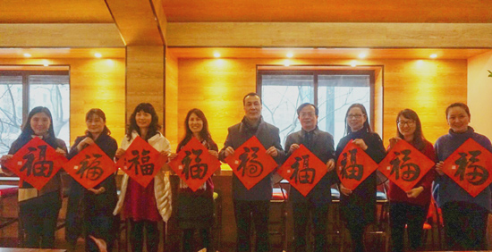 走访期间,李金昌和黄建新还现场提笔挥墨书写福字、对联,即兴创作了水墨画等,字里行间无不流淌着学校对校友们新年的美好祝愿。