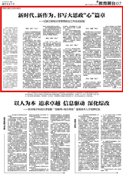 本网讯(记者 毛鸽)3月28日,《中国教育报》第七版以《新时代,新作为,书写大思政“心”篇章》为题,从理论引领、课程思政、文化建设、队伍建设和阵地建设等五个方面详细报道了我校思想政治工作的生动实践。