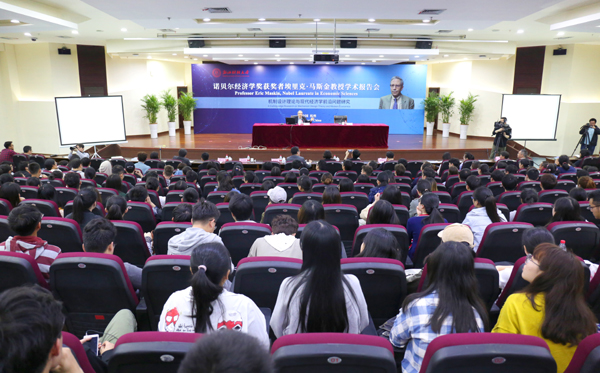埃里克·马斯金教授还参观了我校中国金融研究院、诺贝尔经济学奖文献馆,并为我校师生作了题为“机制设计理论与现代经济学前沿问题研究”的学术讲座。