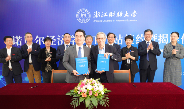 本网讯(通讯员 袁慧兰)3月30日,全省首个“诺贝尔经济学奖工作站”签约暨揭牌仪式在我校下沙校区举行。