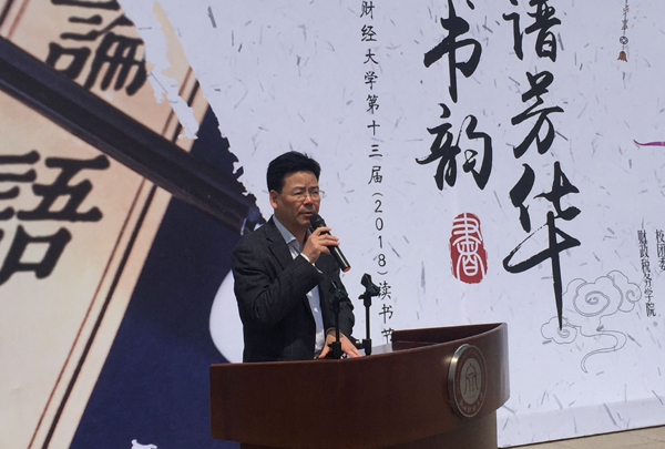 校党委委员、宣传部部长徐晓东和图书馆馆长吴利群宣布读书节开幕