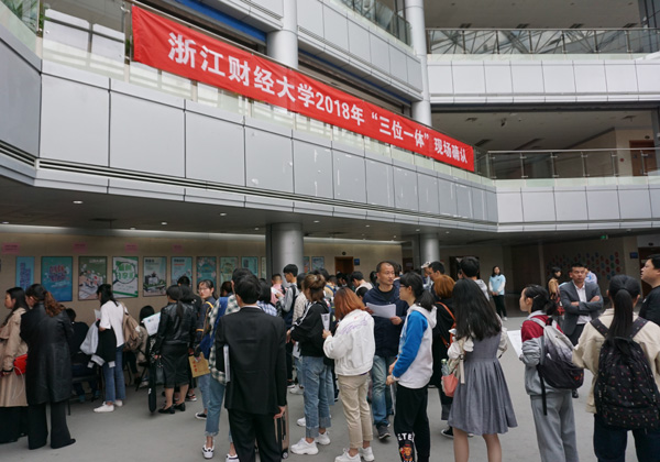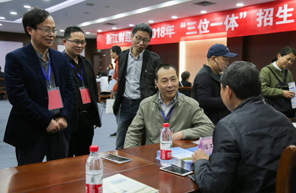 本网讯 4月14日至15日,我校2018年“三位一体”招生综合素质测试在下沙校区举行。校领导李金昌、钟晓敏等来到招生现场,就扎实做好各项工作提出指导意见,并与考生及家长进行了亲切交流。