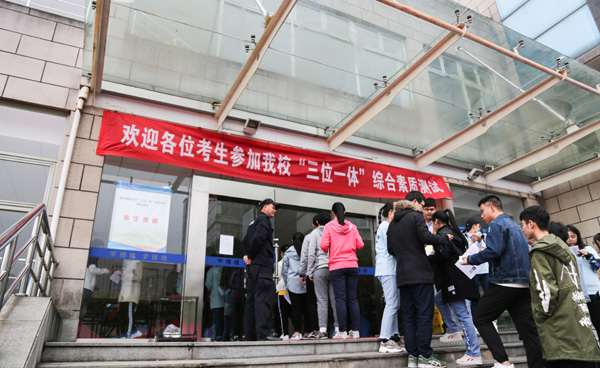 今年,我校“三位一体”招生计划从300人增加至400人。尽管报考条件设置高,但考生报考依然十分火爆。网上注册报名人数2613人,其中,1848人通过书面评审获得测试资格。180余名教学、科研、管理一线的具有高级专业技术职务、博士学位教师和多位知名兼职校友导师担任面试考官,350余名考务人员和志愿者参与此项工作。