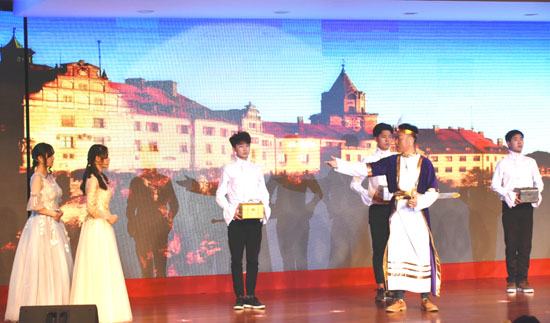 读书节主题晚会分为“书韵无穷”与“书香致远”两个篇章。晚会节目内容丰富,形式多样,精彩纷呈。民乐合奏《大鱼》秉承了悠远的国乐之风,余音绕梁,不绝于耳。歌曲《从前慢》惊艳了全场,让大家品味到了书韵的宁静致远。红色家书诵读《赵一曼的绝笔信》与《彭雪枫家书》,带领观众重温了革命先辈的理想信念。由图书馆青年馆员自编、自导、自演的小品《厉害了,我的馆》,展现了我校建设一流财大图书馆的点点滴滴,赢得了观众阵阵掌声。