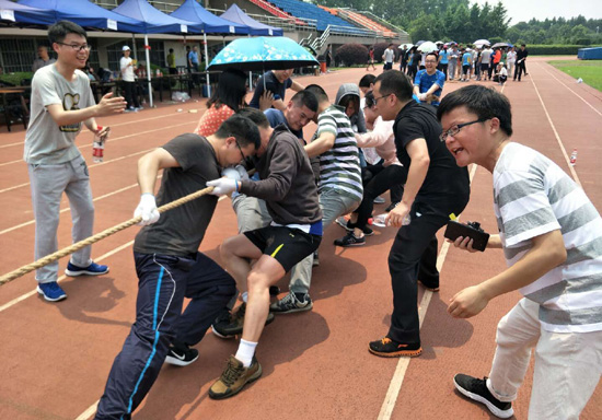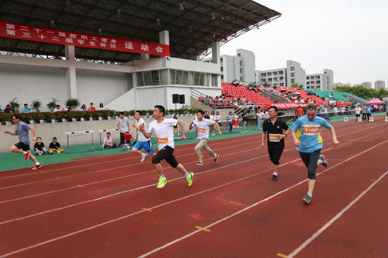 教职工竞技的赛事更是精彩纷呈。同学们纷纷为各自学院的老师呐喊助威,运动场瞬间沸腾起来,掌声雷动响彻云霄。