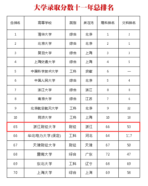 本网讯 据最新公布的《中国大学录取分数排行榜》(2005-2015)显示,我校录取分数总排名位居全国第65位,全国财经类高校排名第10位,文科录取分数总排名全国第53位,理科录取分数十一年总排名全国第66位,均位居浙江省属高校第1位。