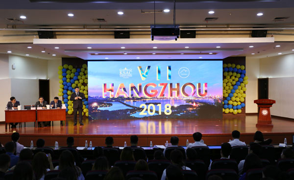 本网讯 6月16日,第七届哈萨克斯坦在华留学生年会暨首届丝绸之路人才论坛在我校下沙校区举行。哈萨克斯坦驻沪总领事克拉乌巴耶夫·佐齐汉、开罗特教育参赞和哈萨克斯坦教育科学部国际计划中心主任别克,新疆塔城市委副书记束从杰、市发改委副主任范立刚,新疆三宝集团总经理段新兰,阿里巴巴集团国际事业部负责人柯刚,我校副校长黄建新、国际学院院长余慕鸿、国际处副处长管春林以及来自全国各地的哈萨克斯坦留学生代表等300余人出席了本次活动。