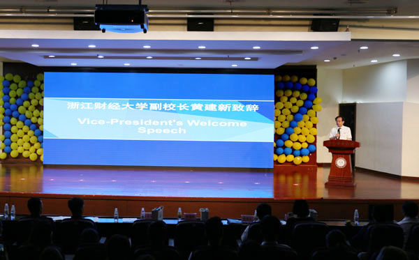 黄建新在致辞中首先代表学校向与会领导和来宾的到来表示欢迎,并简要介绍了我校的人才培养、专业发展、国际化办学情况,回顾了我校与哈萨克斯坦驻沪总领事馆以及哈萨克斯坦国立古米廖夫欧亚大学、沙卡里姆大学、图兰大学、卡拉干达经济大学等4所高校与我校开展合作取得的丰硕成果,充分肯定了哈萨克斯坦在华留学生在中哈友好关系中发挥的重要作用,希望他们“读万卷书、行万里路”,努力做加深中哈友谊的密切促进者、推进中哈交流的积极贡献者和经济合作的成功建设者。