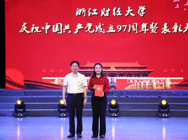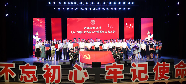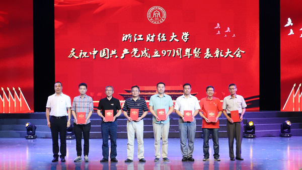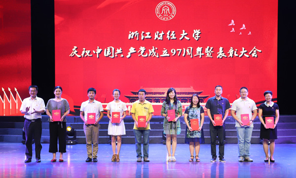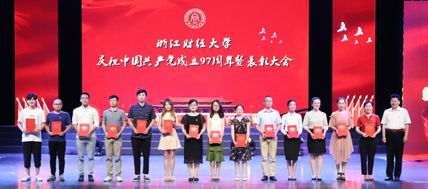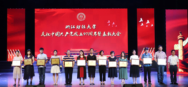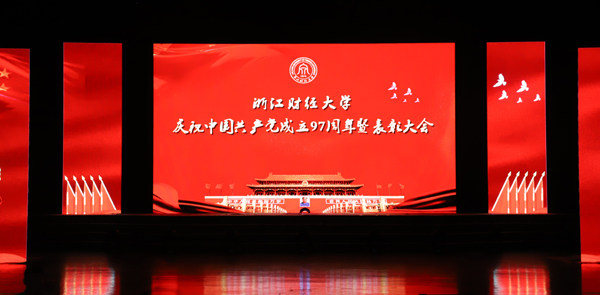本网讯 6月29日下午,学校庆祝建党97周年暨表彰大会在下沙校区隆重举行。校领导班子成员、中层干部、各二级党组织委员、党支部书记、师生党员代表近1000人参加大会。