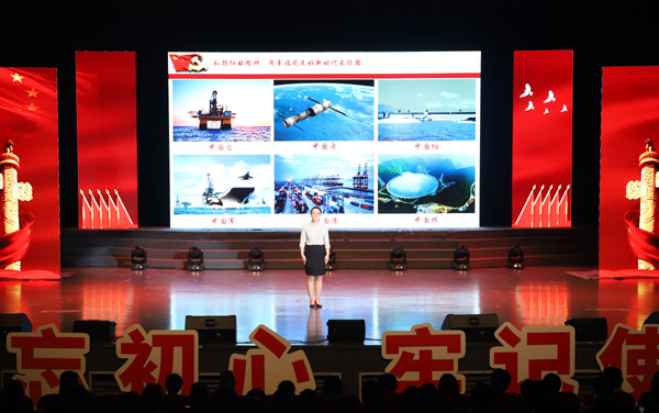 大会上,工商管理学院学生支部书记周衍彤以《不忘初心,弘扬红船精神——用幸福感走好新时代的长征路》为题,通过分享优秀党员师生的感人事迹,阐述了新时代的幸福观;艺术学院教师蒋丽娜以《牢记使命,共红船远赴——党员教育工作者的新时代使命》为题,谈了党员教育工作者牢记以德育人的使命,踏实走好新时代长征路的每一步的感悟;援疆干部石向荣将我校援疆教师舍小家为大家,用实际行动践行“四有”好老师的经历娓娓道来。教师党员们的讲述以真情实感抒发了内心对党的崇敬之情,展现了作为一名党员的时代责任和使命担当。