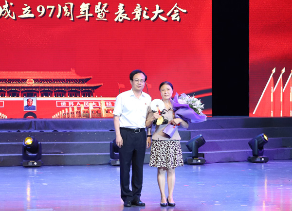 会上还展示了沈渊、李永友、张虹、宓自农等4位教职工党员和8位优秀学生党员的风采,并为坚守校报编辑岗位32年即将退休的老党员阙维军献上了平安扣,以榜样的力量激励全校党员砥砺前行新时代,用奋斗书写人生华章。