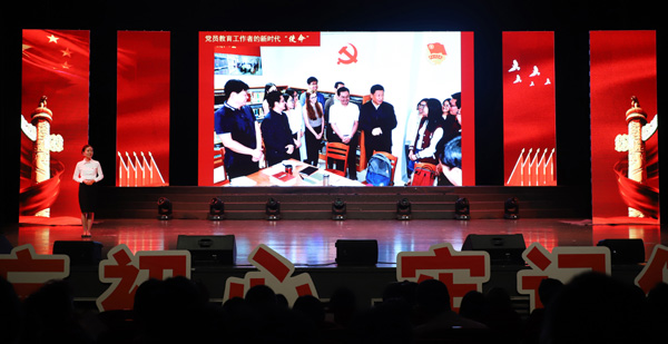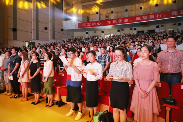 大会分“序幕、不忘初心、牢记使命、砥砺前行、尾声”等五个篇章,回顾党的光辉历程,表彰先进、重温誓词,号召全校师生党员紧密团结在以习近平同志为核心的党中央周围,不忘初心,牢记使命,砥砺前行,翻篇归零,努力开创学校各项工作新局面。